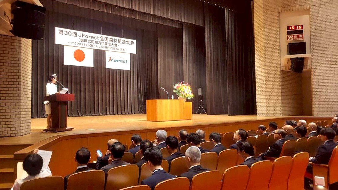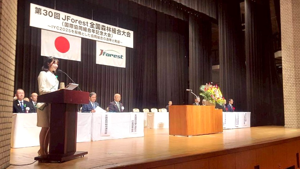ミス日本みどりの大使の佐塚こころが、JForest全国森林組合大会 国際協同組合年記念大会の司会進行を務めました。