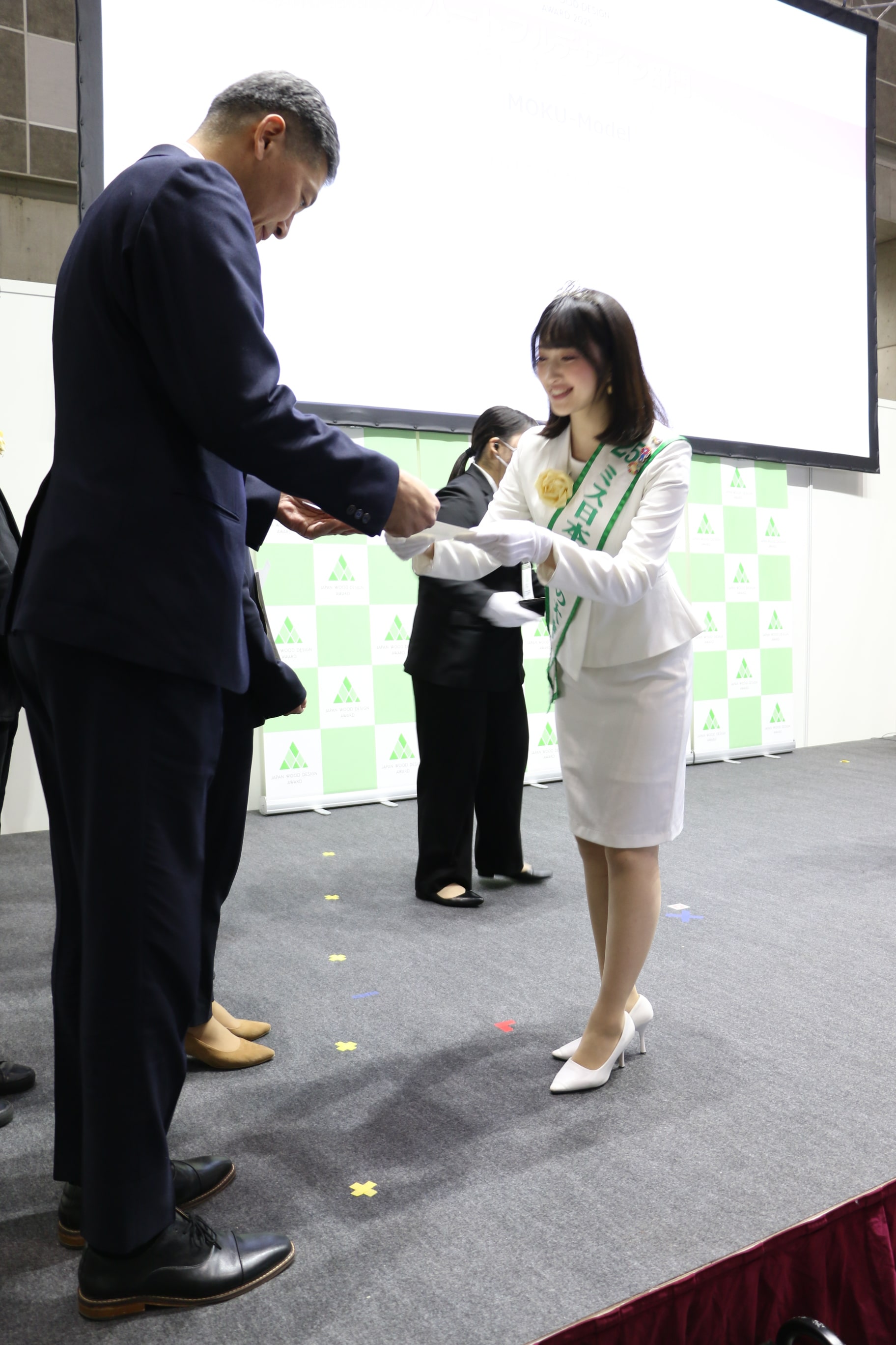 ミス日本みどりの大使の佐塚こころが、エコプロ展2025内で開催されたウッドデザイン賞表彰式にプレゼンターとして登場しました。