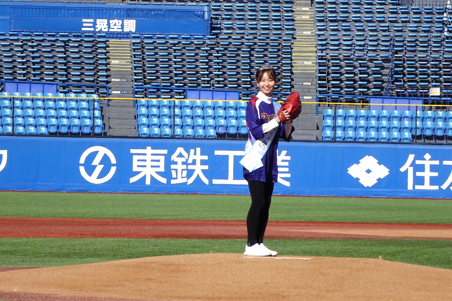 2026ミス日本「水の天使」の志村美帆が、管清工業主催の野球交流大会・始球式に登板しました。