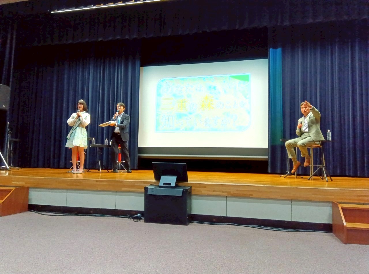 ミス日本みどりの大使の佐塚こころが、三重県玉城町制70周年記念イベント「三重の森 知っていますか」に登場し、気象予報士の石原良純さんとのトークショーアシスタントを務めました。