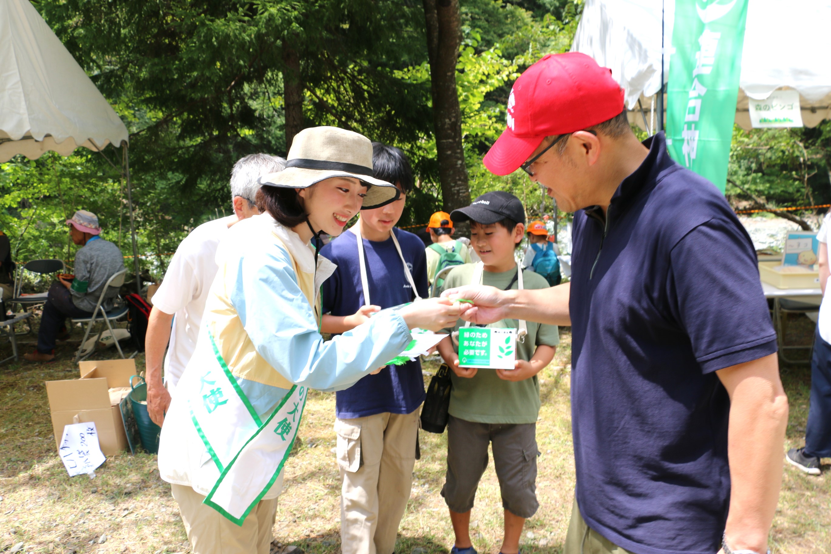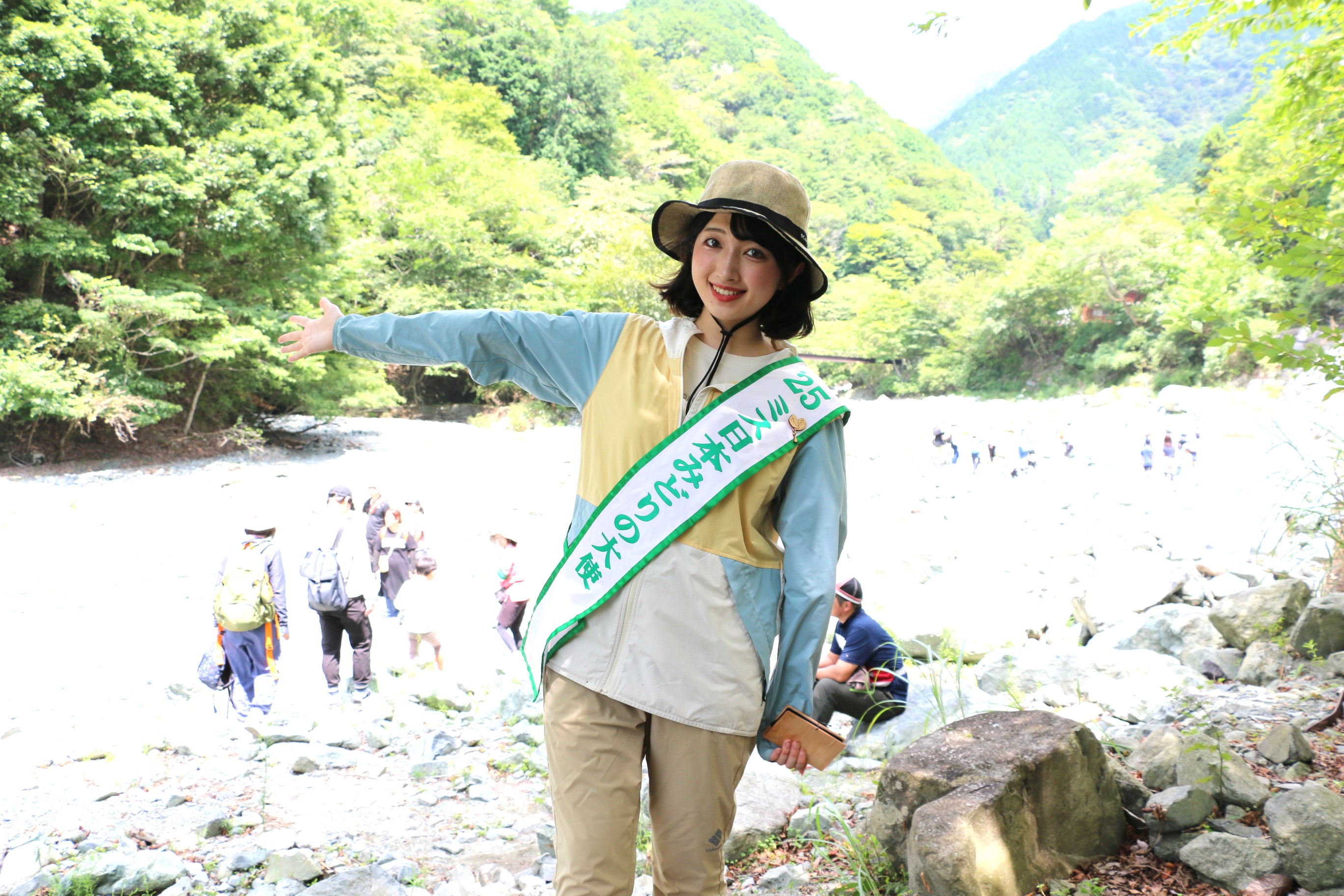 ミス日本みどりの大使の佐塚こころが、毎年恒例の水源林に親しむ「やどりき水源林の集い」に登場しました。