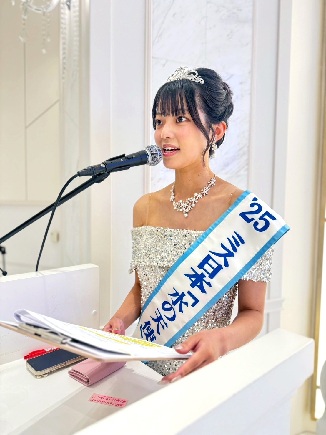 ミス日本「水の天使」の高坂実優が、大和リースによる企業交流会の司会進行を務めました。