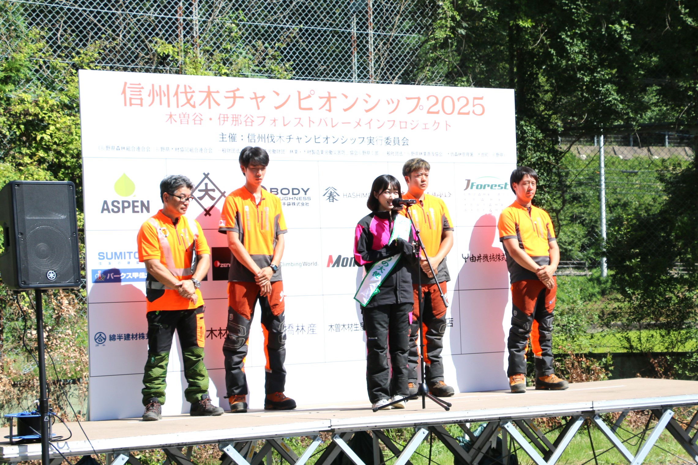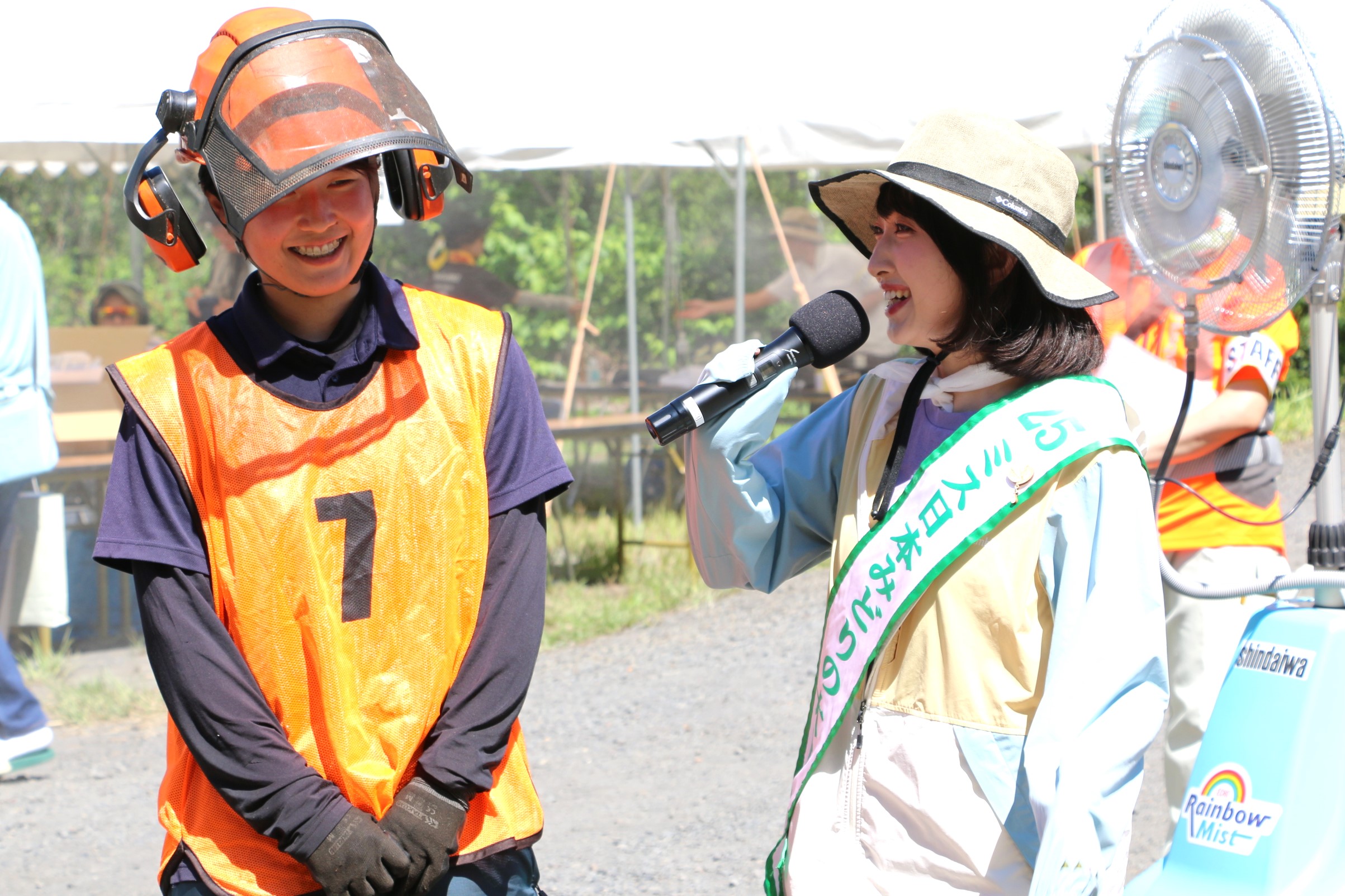 ミス日本みどりの大使の佐塚こころが、長野県で開催されたチェーンソーの技術競技大会「信州伐木チャンピオンシップ」にゲストレポーターとして登場しました。