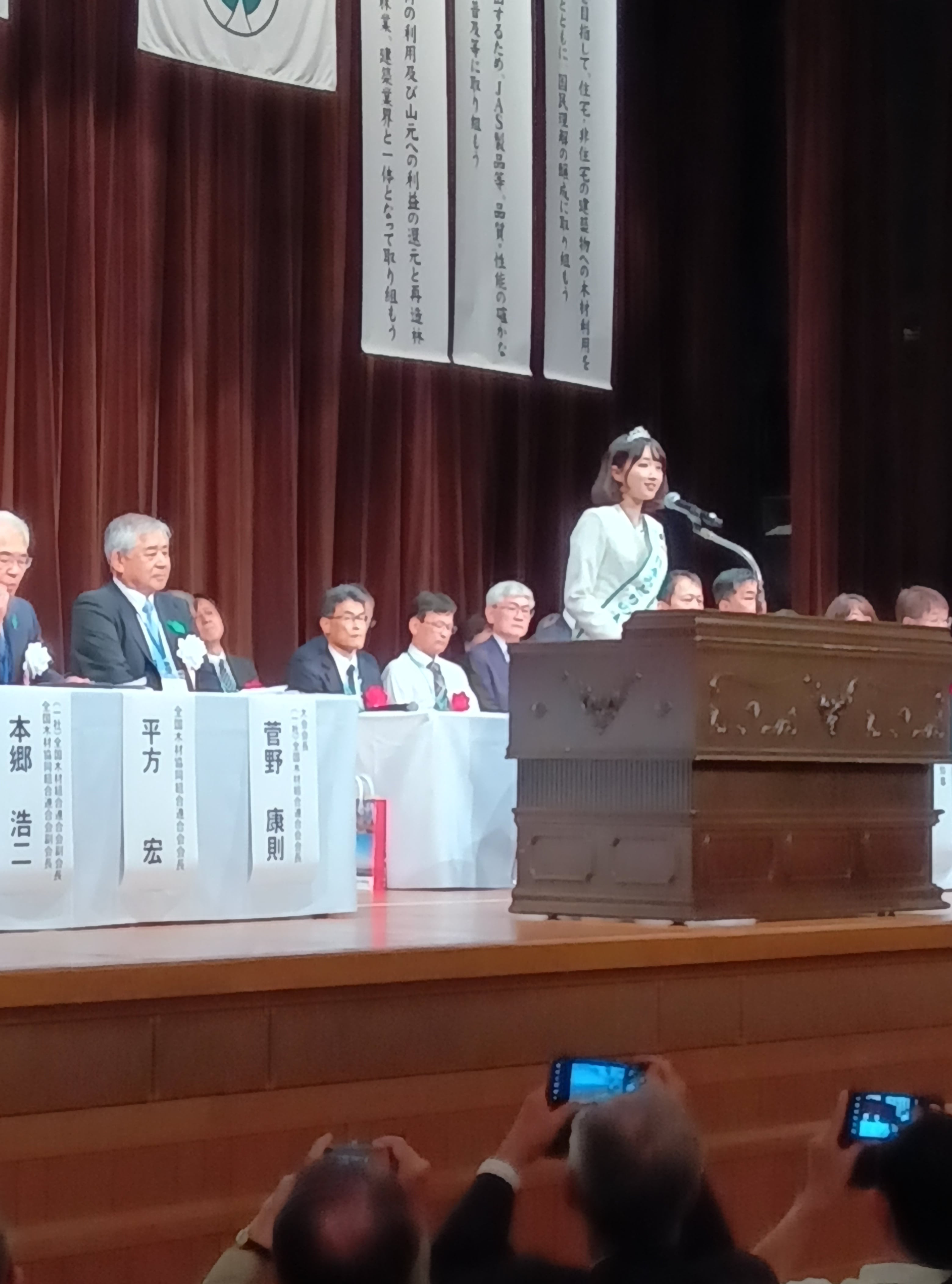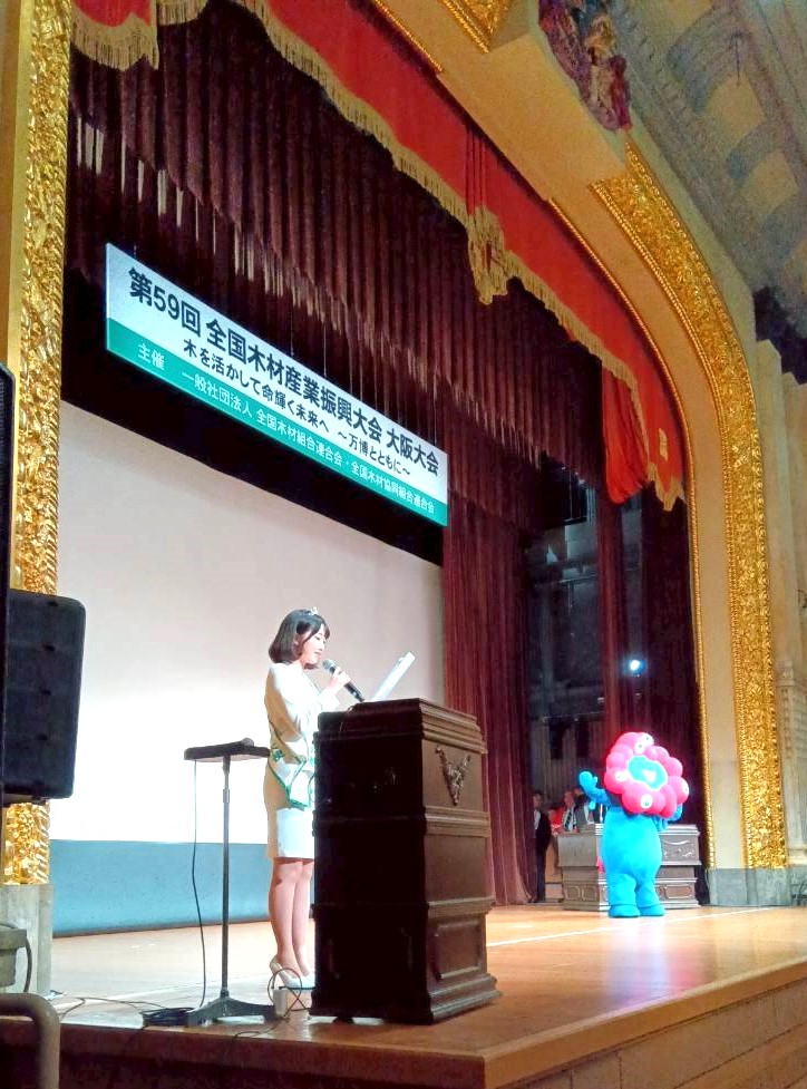 大阪にて開催された全国木材産業振興大会に、ミス日本みどりの大使の佐塚こころが司会として登場しました。