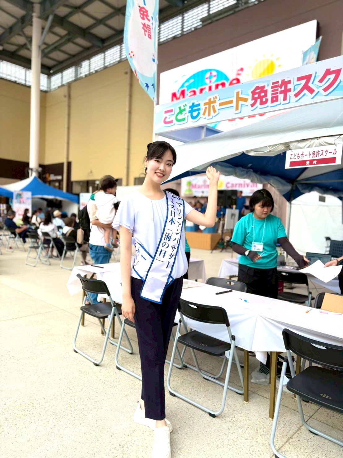 ミス日本「海の日」の高橋彩乃が、神戸で開催された海の遊びの体験イベントにマリンアンバサダーとして登場しました。