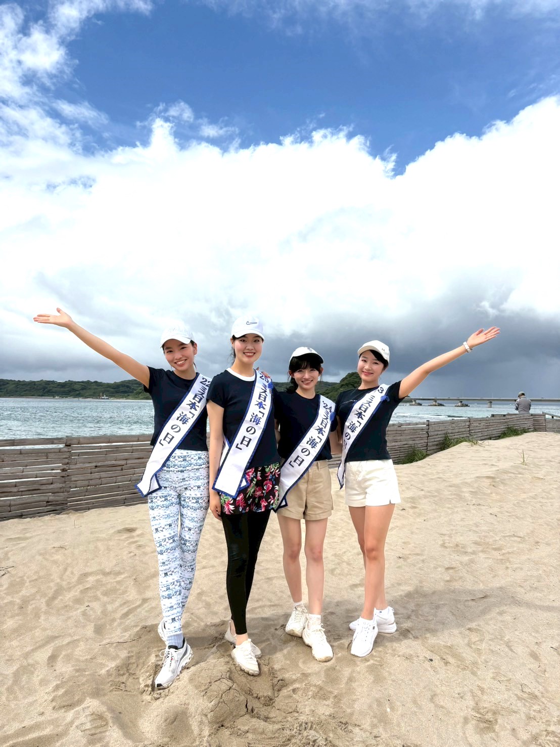 ミス日本「海の日」高橋彩乃を始め、歴代「海の日」受賞者4名が参加し、砂浜の清掃活動に取り組みました。
