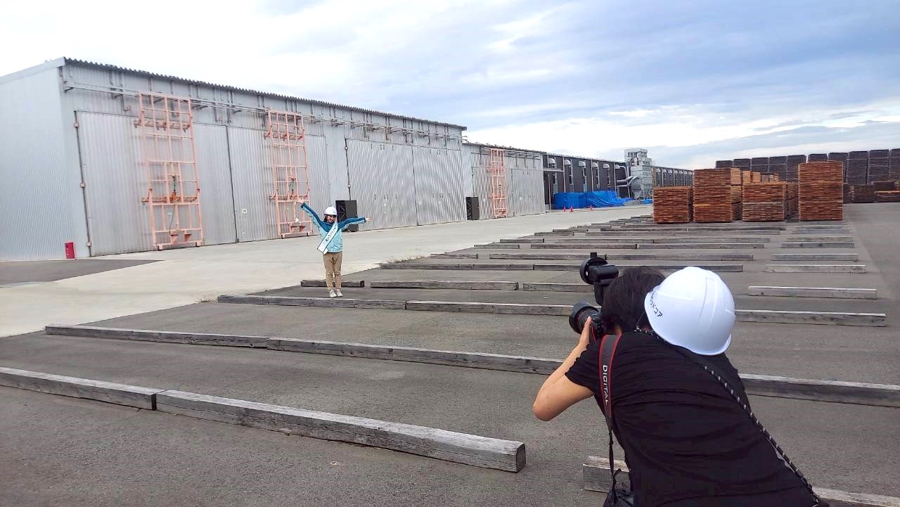 宮城県の材木が強固な建築材に加工されてる様子を取材するため、ミス日本みどりの大使の佐塚こころが福島県浪江町にある工場見学を行いました。