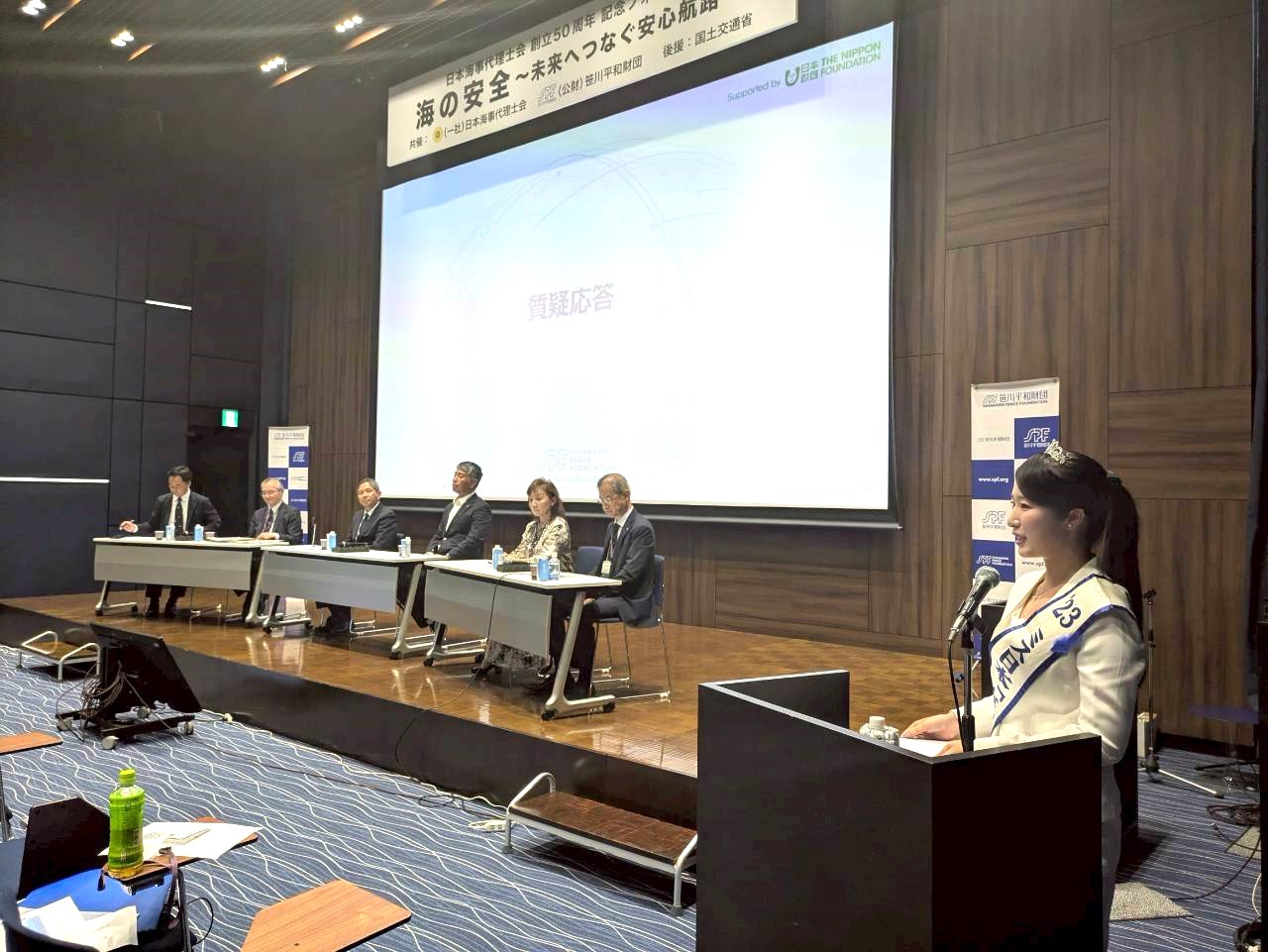 その集まりである日本海事代理士会50周年を記念したフォーラムの司会に、2023ミス日本「海の日」の稲川夏希が登場しました。