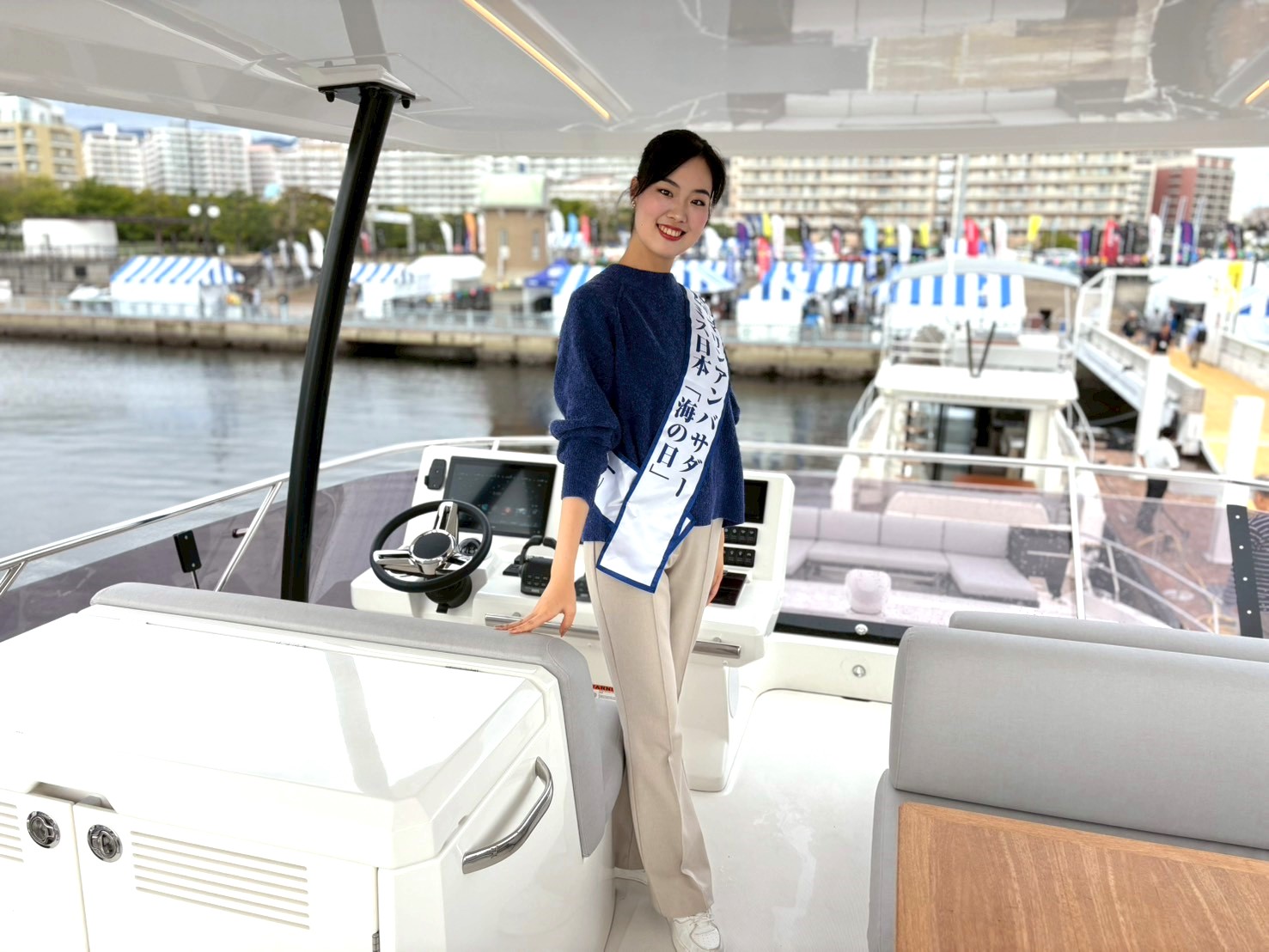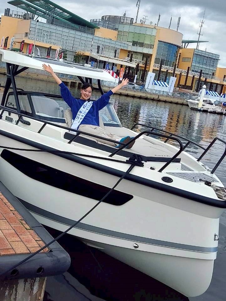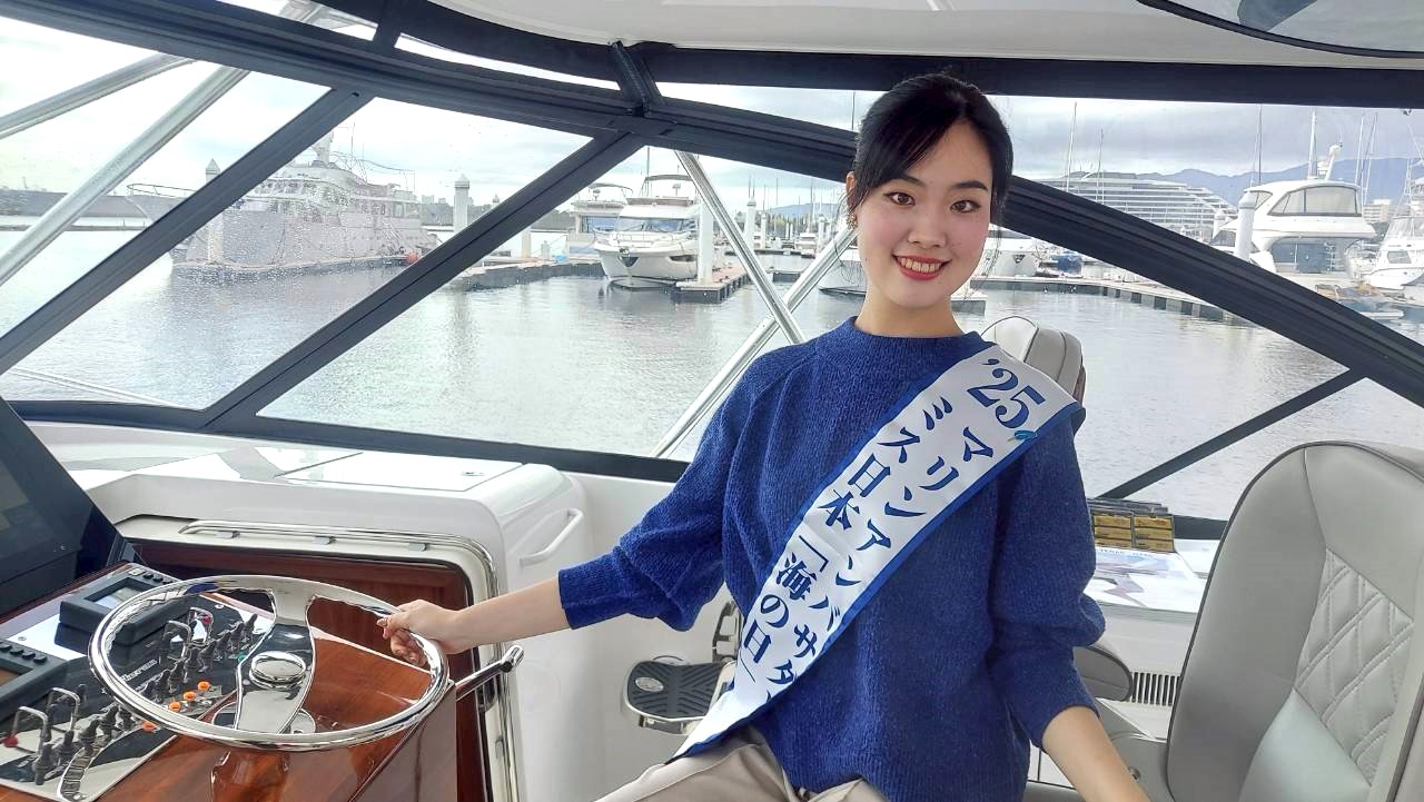 ミス日本「海の日」の高橋彩乃が、兵庫県の西宮ヨットハーバーで開催されたボートショーに登場しました。