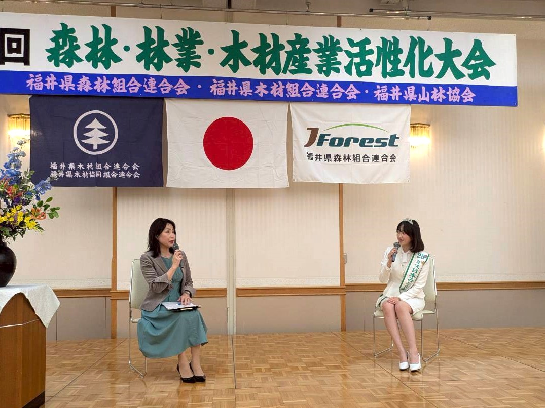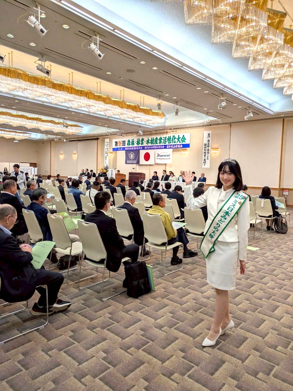 福井県にて、森林や林業の関係者が集まる記念大会に、ゲストとしてミス日本みどりの大使の佐塚こころが登場しました。