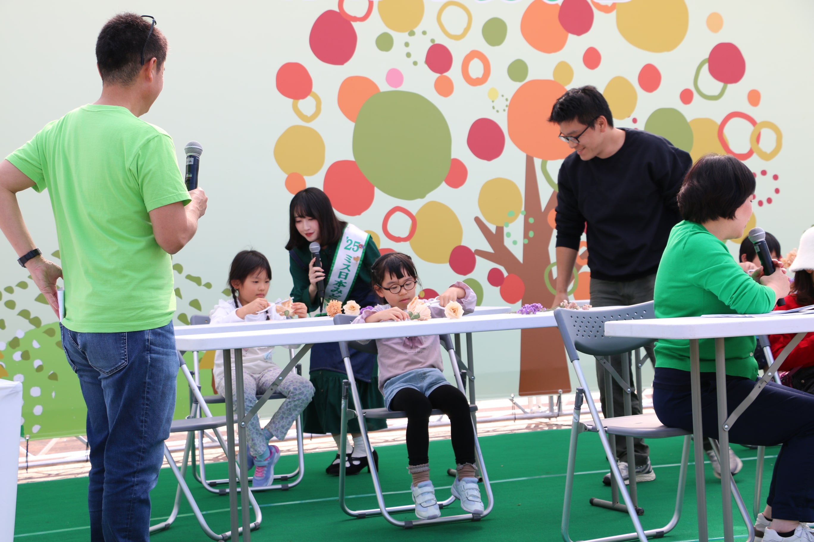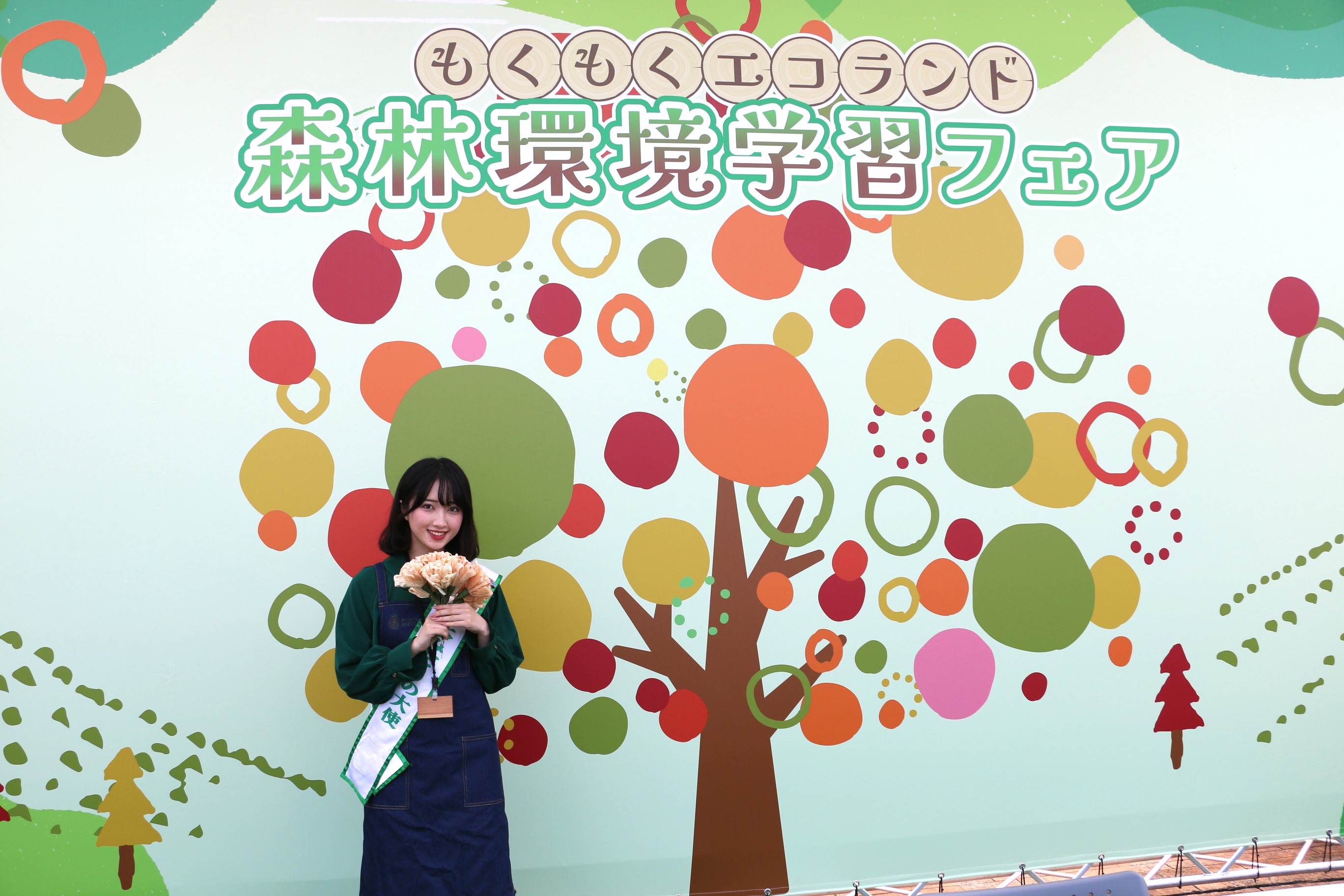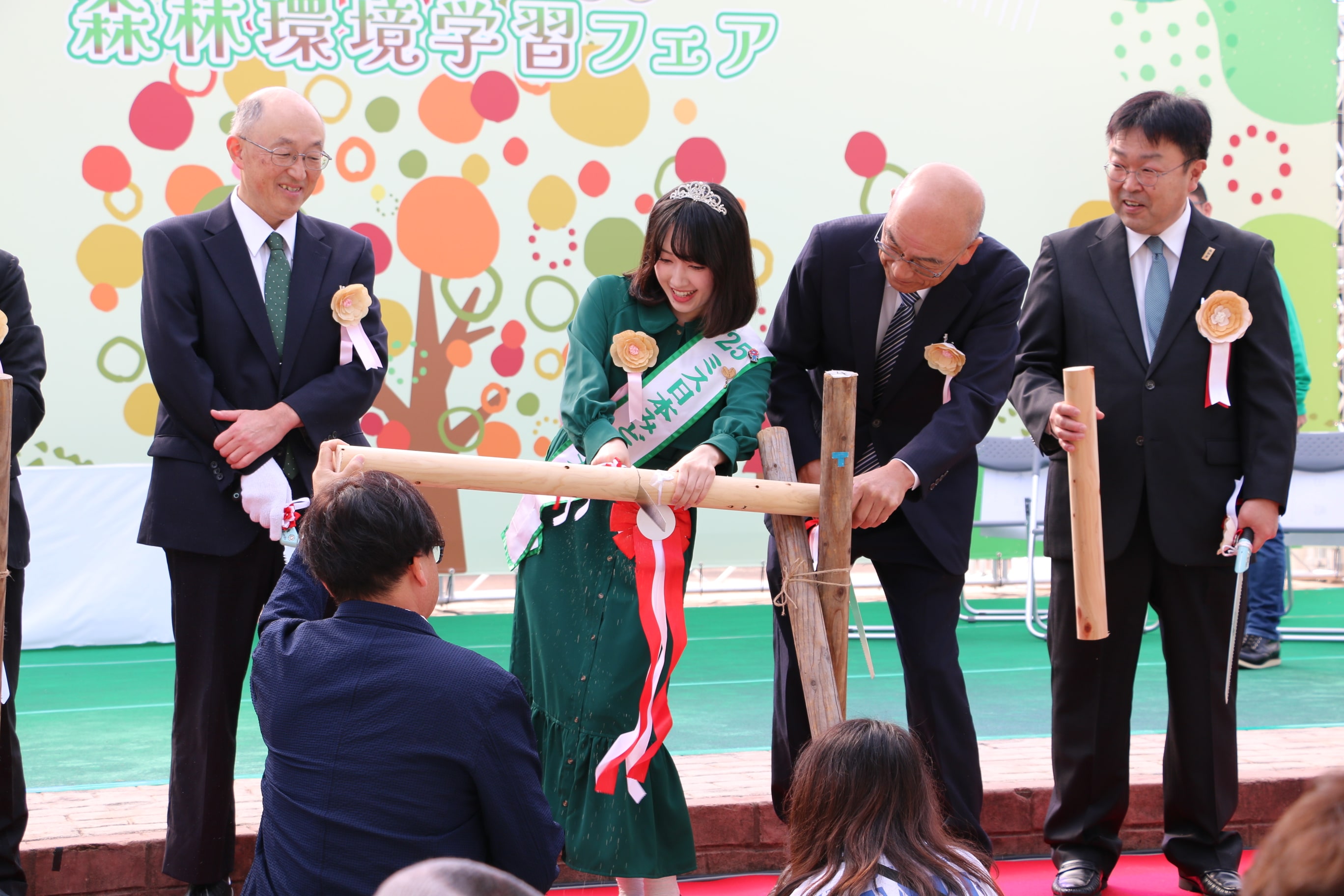地元の子どもたちに木に親しんでもらうイベントにミス日本みどりの大使の佐塚こころが登場しました。