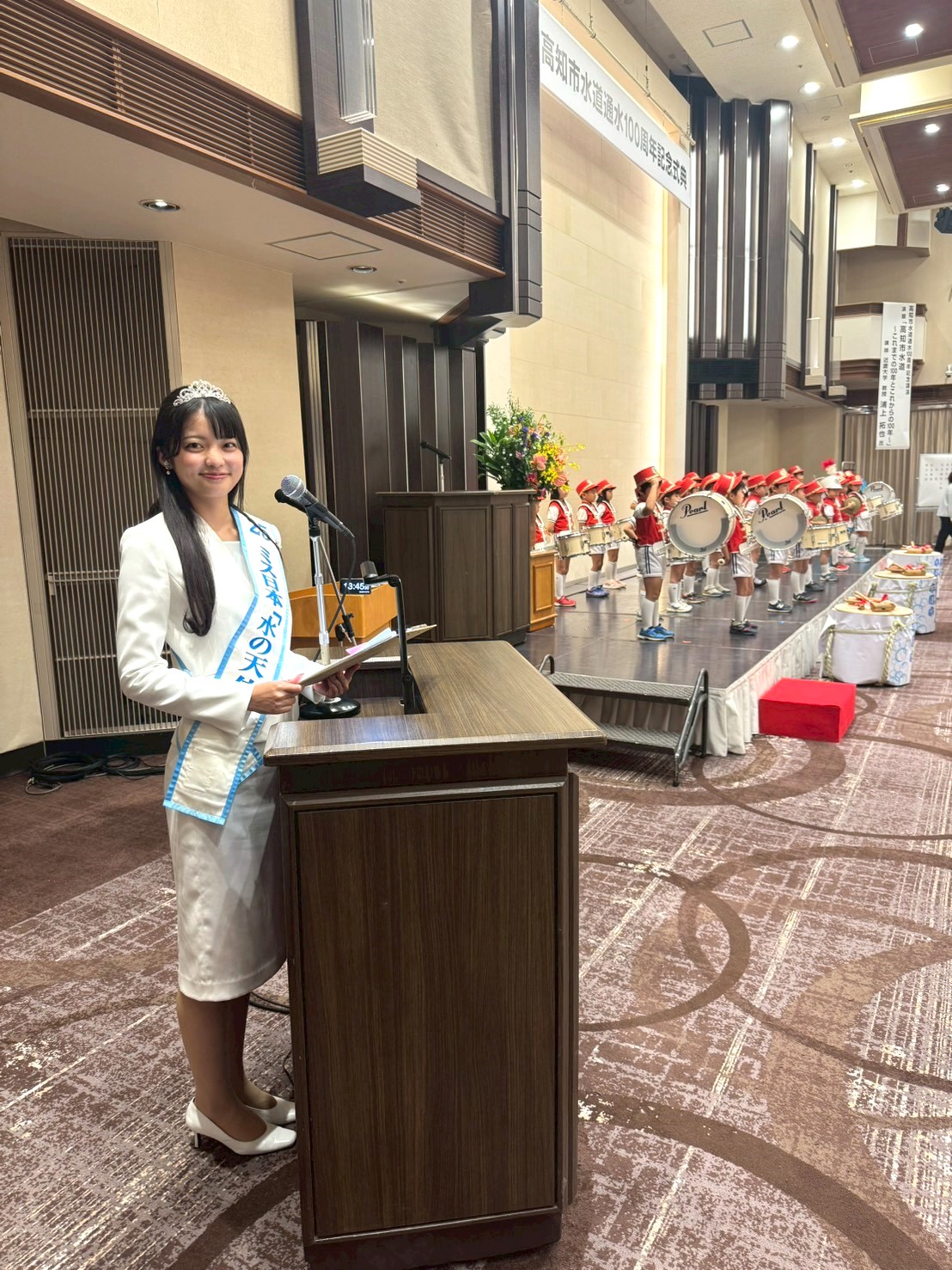 高知市の水道通水100周年を記念するお祝いの式典に、ミス日本「水の天使」の高坂実優が司会として登場しました。