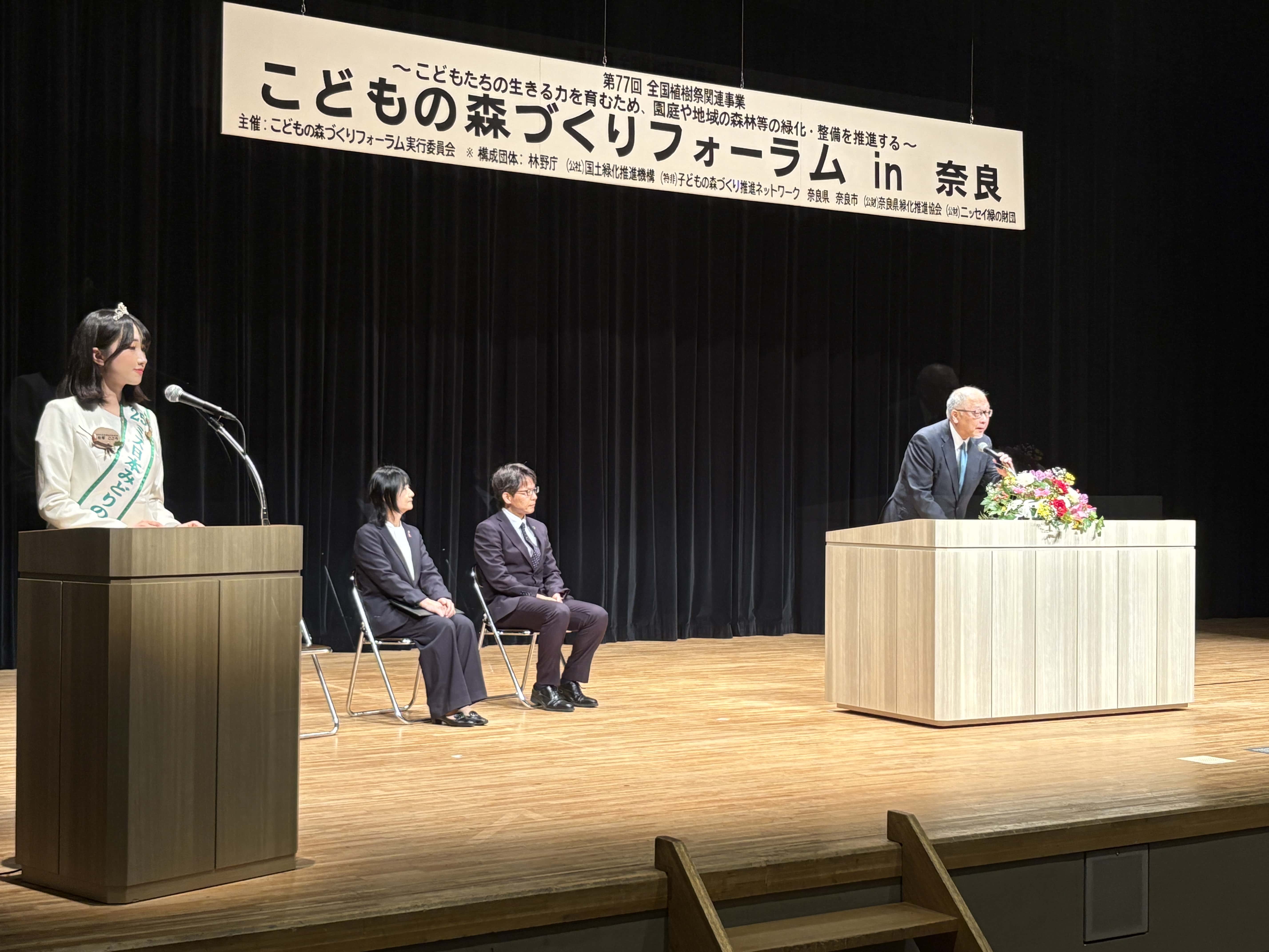 ミス日本みどりの大使の佐塚こころが、子どもたちのための森林のあり方を考えるフォーラムの司会を担当しました。