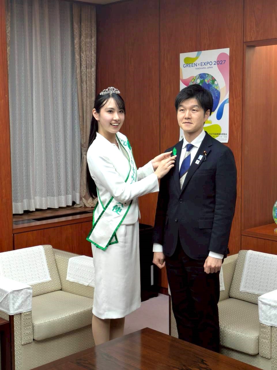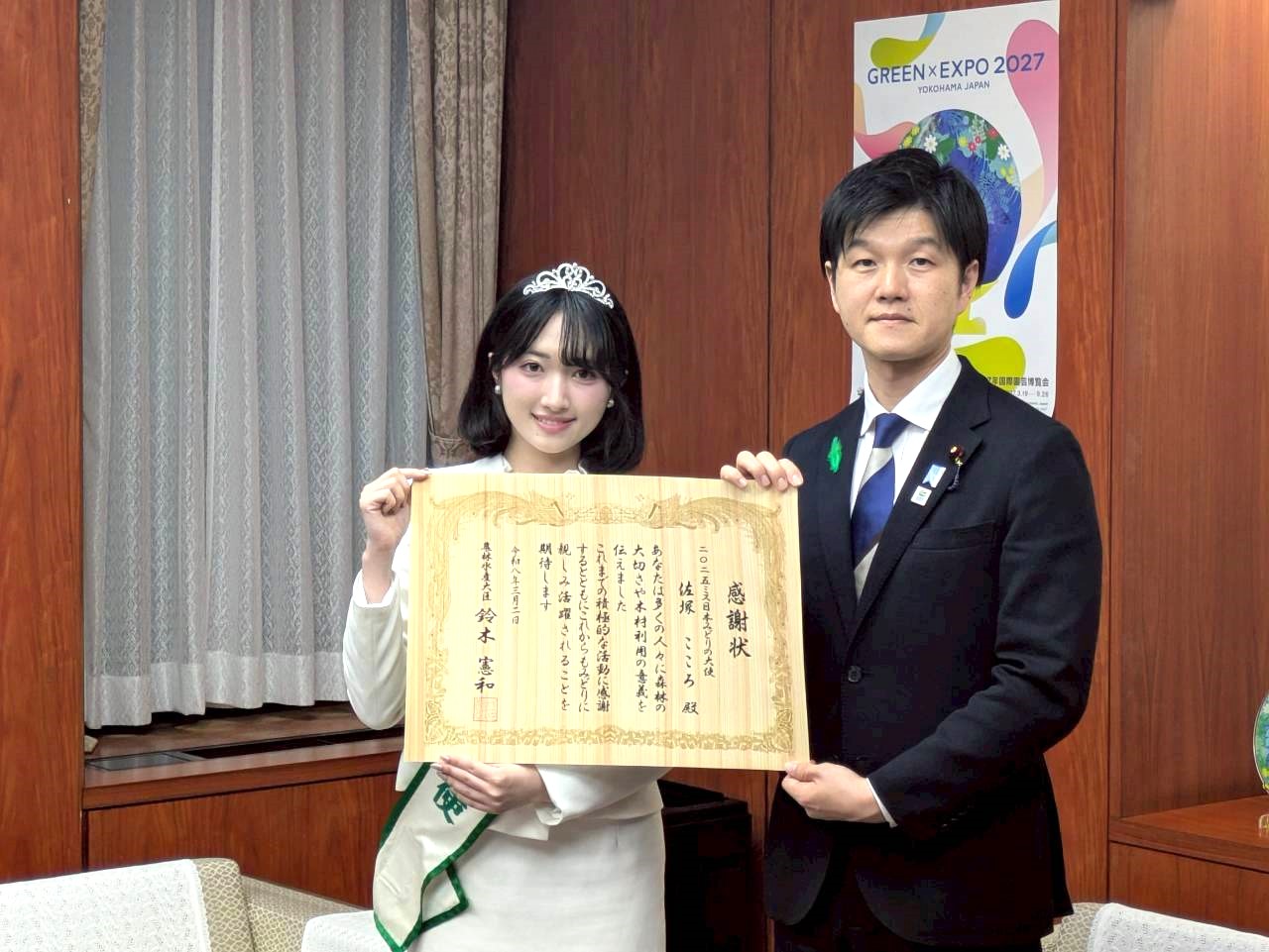 ミス日本みどりの大使の永田愛実と、2025ミス日本みどりの大使の佐塚こころが農林水産省を訪問しました。